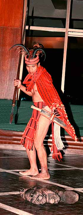 Natives of the Ifugao mountain province dressed in traditional costumes demonstrated traditional song and dance. Purpose for this particular dance was to ensure the prosperity of the hunt. The dance culminated in the sacrifice of several small pigs. Fortunately, wooden pigs were used for this demonstration.