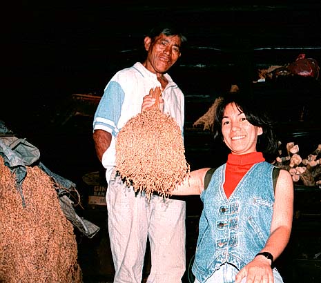 Jose Diez the chief of the village of Batatan proudly displays a head of dried rice he had stored in his hut.