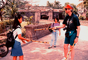 Just outside the ancient walls of Intramuros Kurt practices Arnis with a local college student. In the background one of the large draw bridges over the moat can be seen.